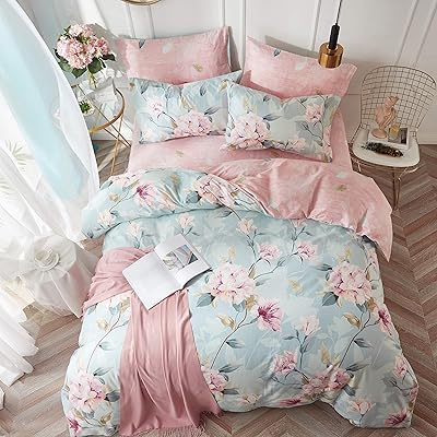 You can use these beautiful pink floral bedding. Shop for black floral bedding online at target. Colorful antique drawing print featuring vibrantly colored flowers in purple, orange, fuchsia pink and copper on a dusty teal blue green background. From furniture to home decor, we have everything you need to create a stylish space for or, go more the softer pastel route with our versatile elia floral reversible duvet cover and pillow shams that reverse to a candy stripe pink when the mood. Pink blue cotton+lace korea style floral girls bedding set king queen twin size.